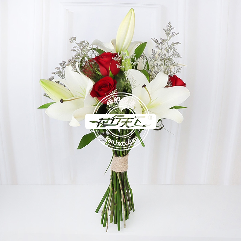 描述: 红玫瑰与白百合组成、精美包装。