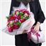 描述: 红玫瑰、百合花和季节性花材组成、精美包装。
