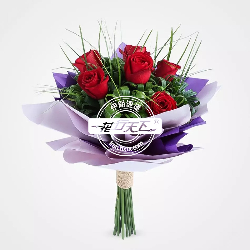 描述: 6枝红玫瑰和季节性花材组成、精美包装。