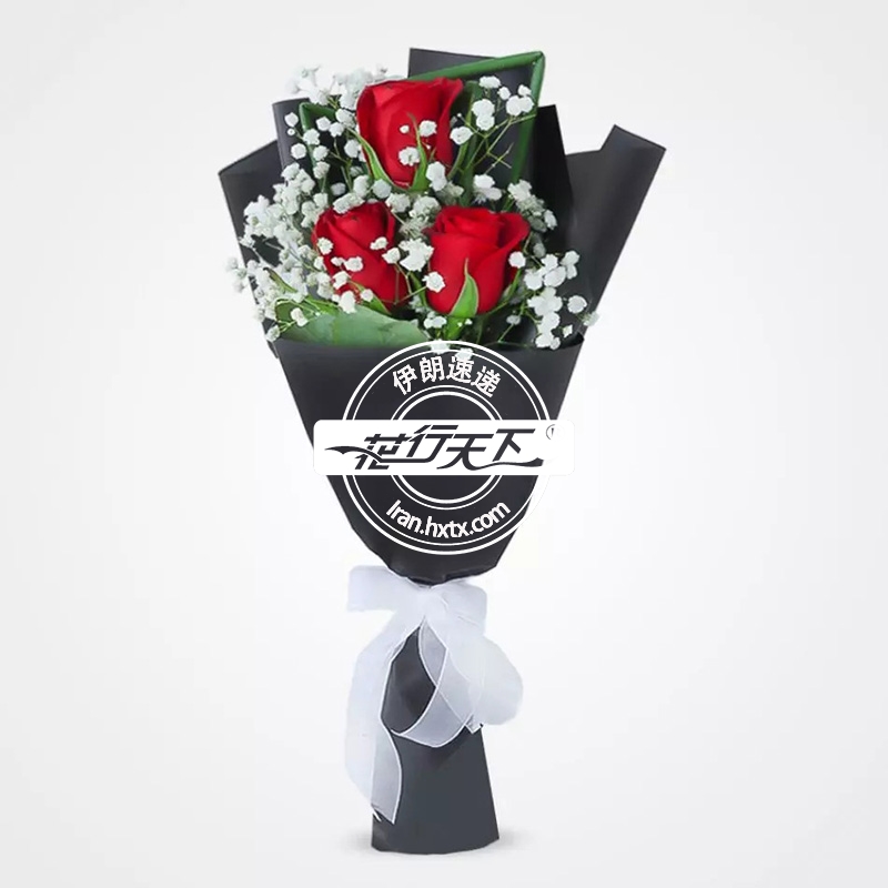 描述: 3枝红玫瑰和满天星组成、精美包装。