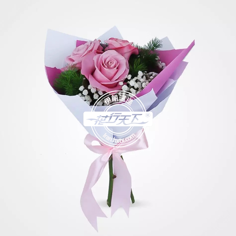 描述: 3枝粉红玫瑰和满天星组成、精美包装。